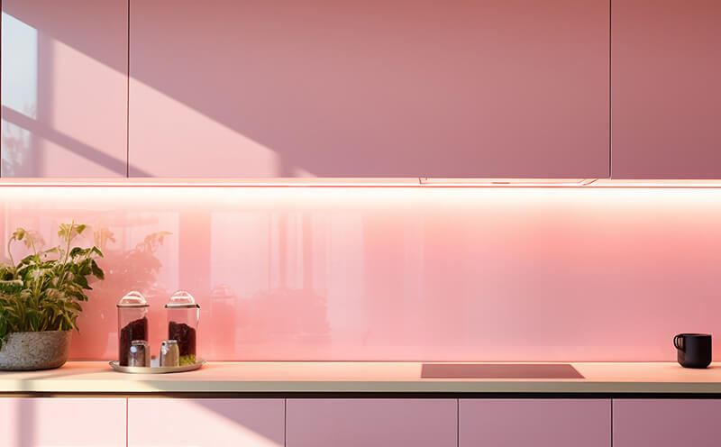 高溫烤漆技術,確保玻璃色彩持久不掉色,適合廚房防潑水背板、櫥櫃門片、電視牆、商業空間裝飾,展現時尚與個性風格。
